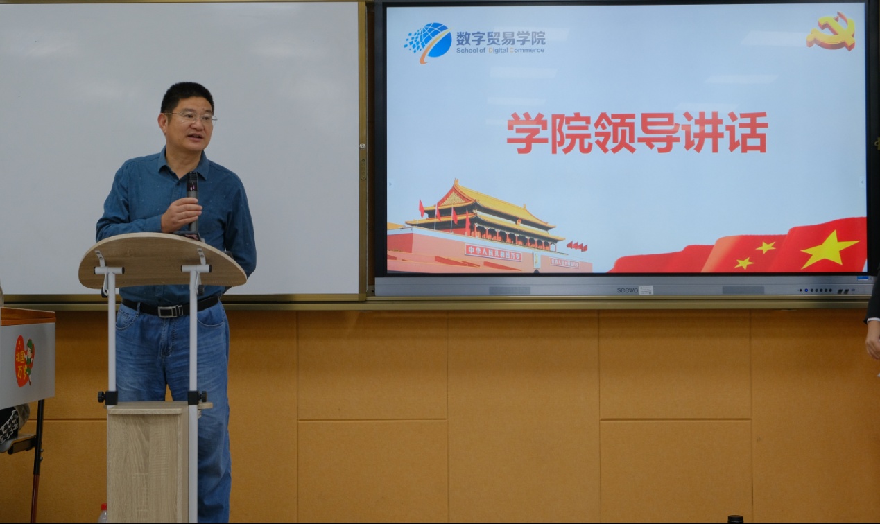 接着,数字贸易学院教师党员代表董茜茜老师表达了对新生的寄语,她们希望在接下来四年的学习生活中,同学们能找准人生方向,知行合一、自强不息,做好自己的规划,做有理想信念、有时代担当的大学生,充实美好的青春岁月。