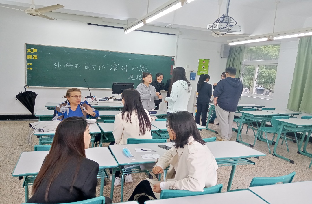 10月9日中午,2022年 “外研社·国才杯”演讲比赛院级决赛暨省级选拔赛在英语学院C213举行。经过层层选拔,英语、商务英语和翻译三个专业共有9位同学参加了此次院级比赛。张玉宏、外教Barbara、黄艳、高银和张悦等老师担任了比赛评委。
