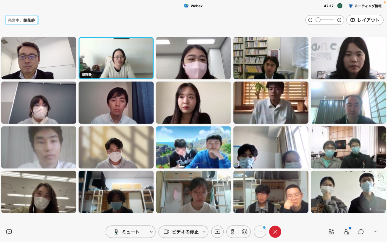 胡燕静副院长在致辞中表示,时值中日邦交正常化50周年,两国民间举行了形式多样的纪念交流活动,此次线上交流活动也在双方学校老师、同学们的共同努力下越办越好。相信通过本次交流活动,双方都能够进一步开阔视野、增进友谊,加深相互了解。