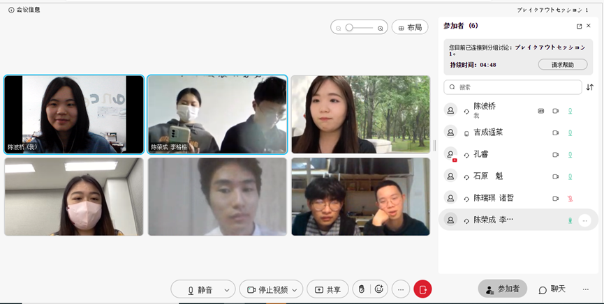 随后,两校学生分为三组,进入单独的聊天室开展自由问答环节。双方学生就大学生活、中日文化等感兴趣的话题进行热烈交流,发表了自己的见解,增进了彼此的了解。
