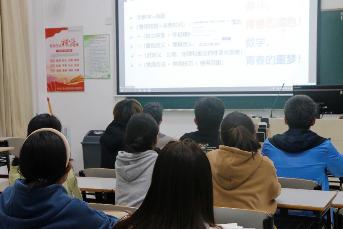 接着,结合大学数学的学习内容以及它的特征与难点,许老师向同学们分享了大学数学学习要点,其中包括梳理体系结构,做好错题笔记,掌握经典方法,积累解题技巧,对数学领域的进展永远保持兴趣等方法,还提到在解题方面,切忌似懂非懂与急于求成,一步步引导同学们学习和探索。