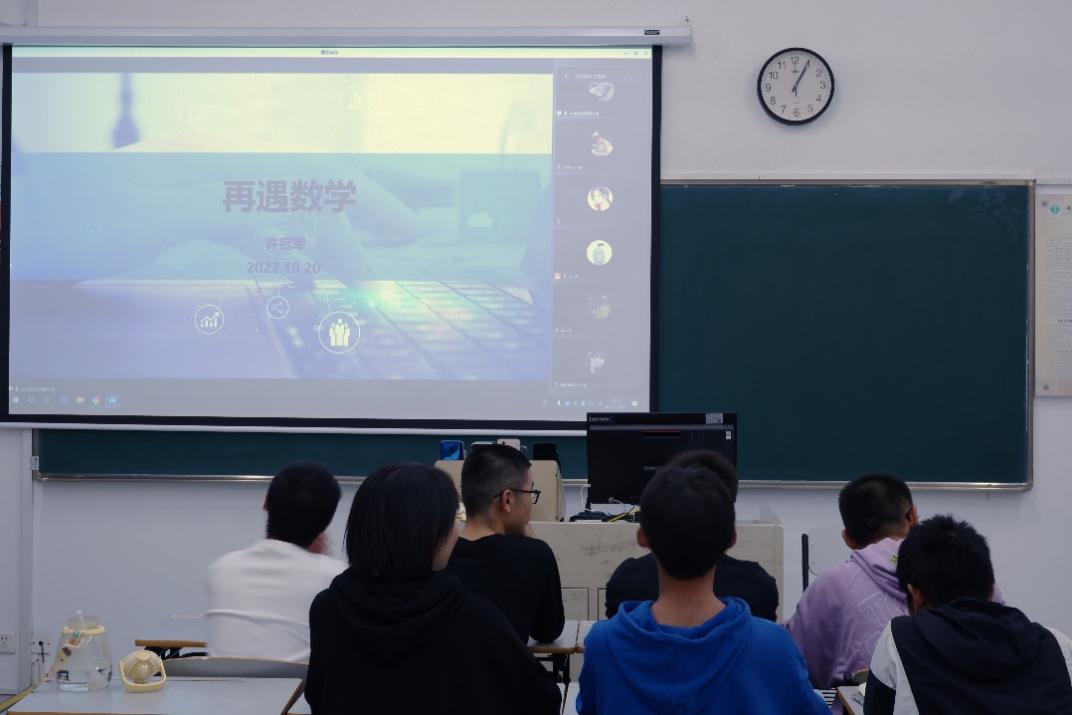 会议伊始,许老师通过“奋斗是青春的底色”引出“数学是青春的噩梦”,并结合一些具体事例阐述了数学的来源、牛人对数学的定义、数学的发展主干、基础数学分支等方面,巧妙提出第一个主题“数学是什么”。讲座过程中,许老师幽默风趣、慷慨激昂,很快就把同学们带入了数学的话题中,同学们热情高涨,充满好奇,在课堂教学的理论知识上又有了新的认识。