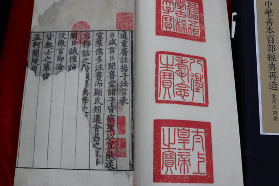 展示区里存放着大量的传统古籍制成品,其中不乏古籍影印、孤本影印、古籍善本再造的作品,以及在印度新德里召开的第五届世界印刷代表大会上获得金奖和国家新闻出版署“纸张部优秀产品奖”等诸多奖项的影印的弘一大师手迹《金刚经》。