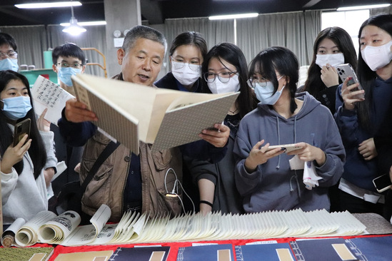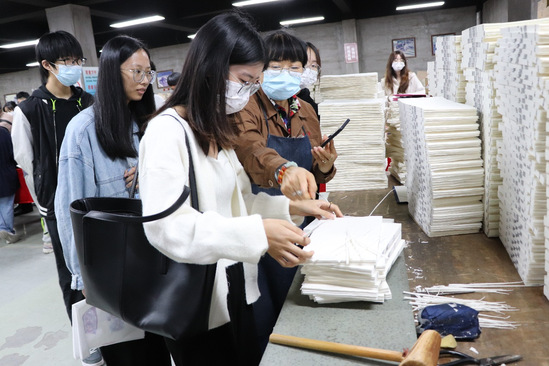 在装订车间,除了有工作人员和老师的讲解,学生们还可以沉浸式体验传统古籍的装订过程,体会线装书的传统工艺魅力。