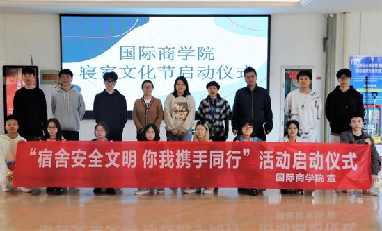 为更好地做好学院寝室文明工作,营造安全、文明、好学的寝室氛围,国际商学院于11月1日中午在1号教学楼一楼大厅举行了“宿舍安全文明,你我携手同行”为主题的寝室文化节启动仪式,学院党委书记李建凤、学院党委副书记凌玮、学工办主任俞玲、公寓负责老师劳倚乐与学院寝室长代表参加了本次仪式。