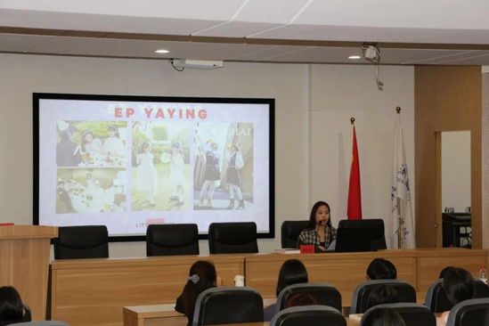 随后,由优秀毕业生蔡佳怡学姐上台,分享自己在雅莹集团的工作及回顾了自己的大学时光。雅莹集团是国内知名的时尚公司,蔡学姐目前主要是做品牌推广。作为网络与新媒体专业的学生,蔡学姐本人经历就是融合型人才的优秀样本。同时,蔡学姐为22级时尚传播新生们提供了宝贵的竞赛经验,鼓励同学们积极参加竞赛。随后她与大家讨论“大家心目中的服装行业是什么样的”这个话题,让大家对时尚产业和一线工作有了一定的认知。
