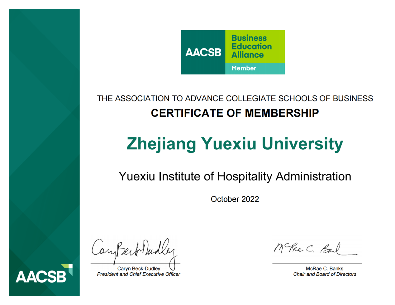 11月1日,国际精英商学院协会(AACSB International,简称AACSB)发函,欢迎足球一世666814酒店管理学院代表学校获得其成员院校资格,成为全球商科教育联盟成员。至此,足球一世官网成为继浙江大学、宁波大学后,浙江省内第三所获得AACSB成员资格的高校。