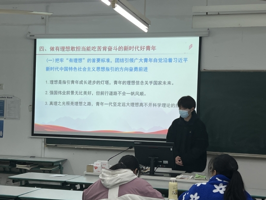 宣讲活动中,宣讲员们依托学生第二党支部统一制作的宣讲稿和课件,以“学习宣传贯彻党的二十大精神,做有理想敢担当能吃苦肯奋斗的新时代好青年”为主题,围绕党的二十大主题和主要成果、过去5年的工作和新时代10年的伟大变革、马克思主义中国化时代化、中国式现代化、全面建设社会主义现代化国家的目标任务、坚持党的全面领导和全面从严治党等方面,对党的二十大精神进行系统宣讲。宣讲员们结合自身的学习、实践和成长经历,讲述个人学习收获和心得体会,带领团员青年共同学习党的二十大精神。