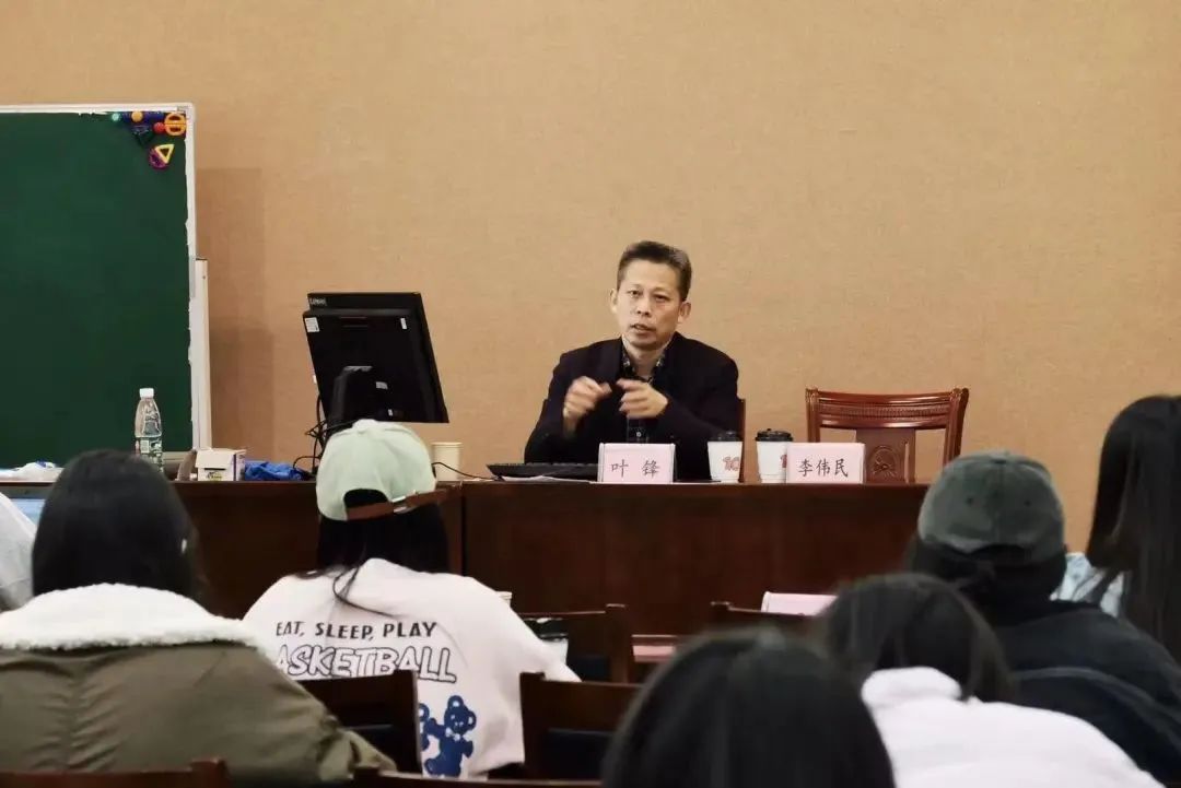 刘家思院长致开场辞并代表学校欢迎叶锋秘书长的到来,院长表示,“叶老师是我们浙江省乃至中国电影行业的资深工作者,这是非常难得的事情”,并对同学们在响应“新十条”防疫号召的情况下积极支持学术讲座表示欣慰。李伟民教授作与会嘉宾介绍。叶锋秘书长温情回忆进入电影行业的始末,活跃了严肃的会场气氛也调动了同学们的紧张情绪,自然转入对《长津湖》到《我不是药神》票房变化的举例说明,以专业人士的角度引入了本次讲座的主题,即影片从公告到上映的荧前幕后,启示同学们于现下新兴的网络微短剧行业的就业思考。