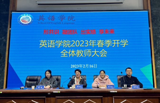 2月16日上午,英语学院在鸿书图书馆报告厅召了2023年春季学期教师大会,学院领导和全体教师参加,会议由党委副书记俞科安主持。