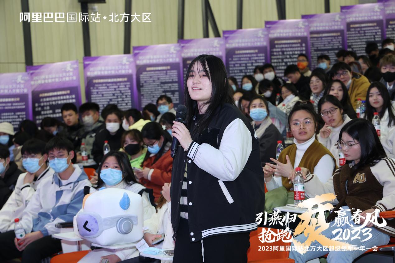 大家一同前往报告厅参加2023阿里国际站北方大区核心商家专属外贸人才推介会讲座。在讲座开始前,主持人与各位同学们进行了互动问答,通过互动对阿里巴巴国际站和跨境电商行业有初步的了解。