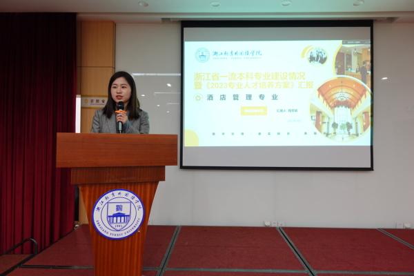 会上钱芳斌副院长汇报了专业建设基本情况、专业定位、专业特色、成果和成效、2023版酒店管理专业人才培养方案培养目标、毕业要求、课程体系、学时学分以及存在问题和困惑,着重突出了酒店管理专业人才培养的特色。