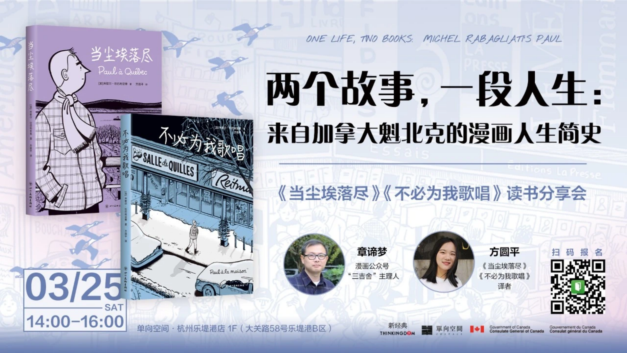 3月25日下午,由加拿大驻上海大使馆和新经典文化联合举办的,加拿大魁北克图像小说读书分享会在杭州单向空间书店举办。作为本次读书会推介的两本图像小说《当尘埃落尽》和《不必为我歌唱》的译者,我院应用法语系方圆平老师受邀参加,与浙大城市学院图书馆馆员、杭州市哲学社会科学优秀青年人才、漫画评论家章谛梦老师对谈。