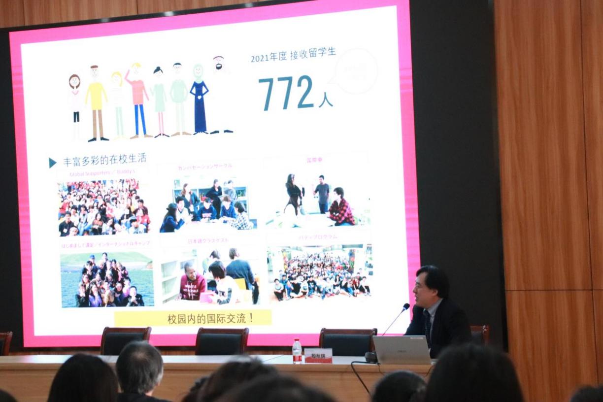讲座伊始,东方语言学院院长邱鸣教授代表学院向远道而来的堀洁副校长和殷秋瑞老师表示热烈的欢迎。紧接着,樱美林大学堀洁副校长用中文向与会师生致以问候,会场响起阵阵热烈的掌声,随后堀洁副校长郑重地表达了进一步与我院合作交流的期待与喜悦之情。