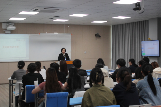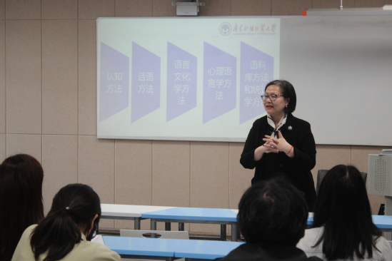讲座开始前,西方语言学院副院长吴彦秋对杨可教授进行了简单介绍。随后,杨可教授从定义、产生背景、相关概念(术语)、研究任务、研究方法及国内研究现状等方面为学院师生详细介绍了政治语言学这一新兴的交叉性语言学学科。杨可教授指出,在语言学发展过程中,只为了语言而研究语言最终会走向学科的“死胡同”,当今语言学研究范围愈发细化与交叉,政治语言学作为前景广阔的学科应当受到重视。