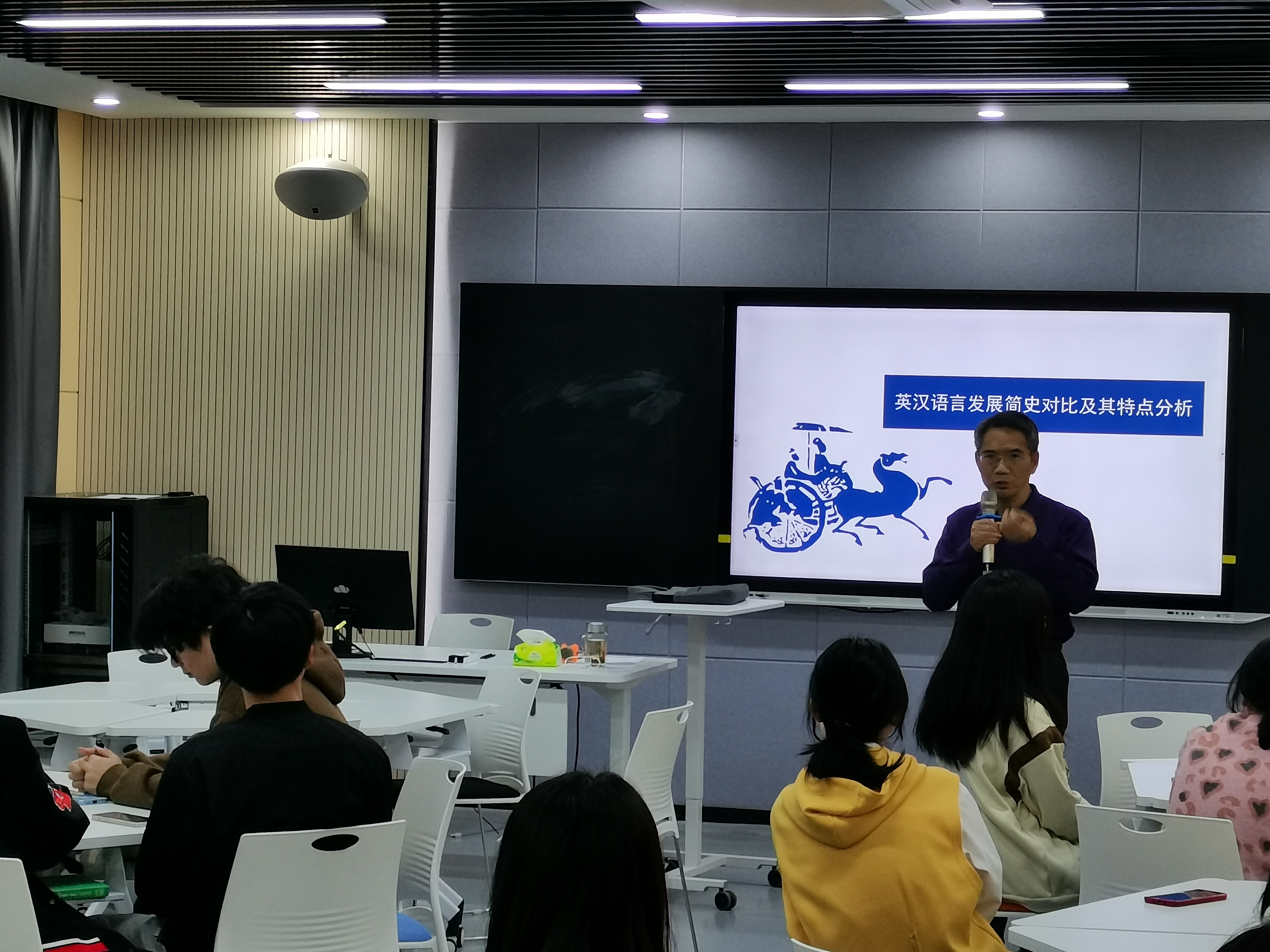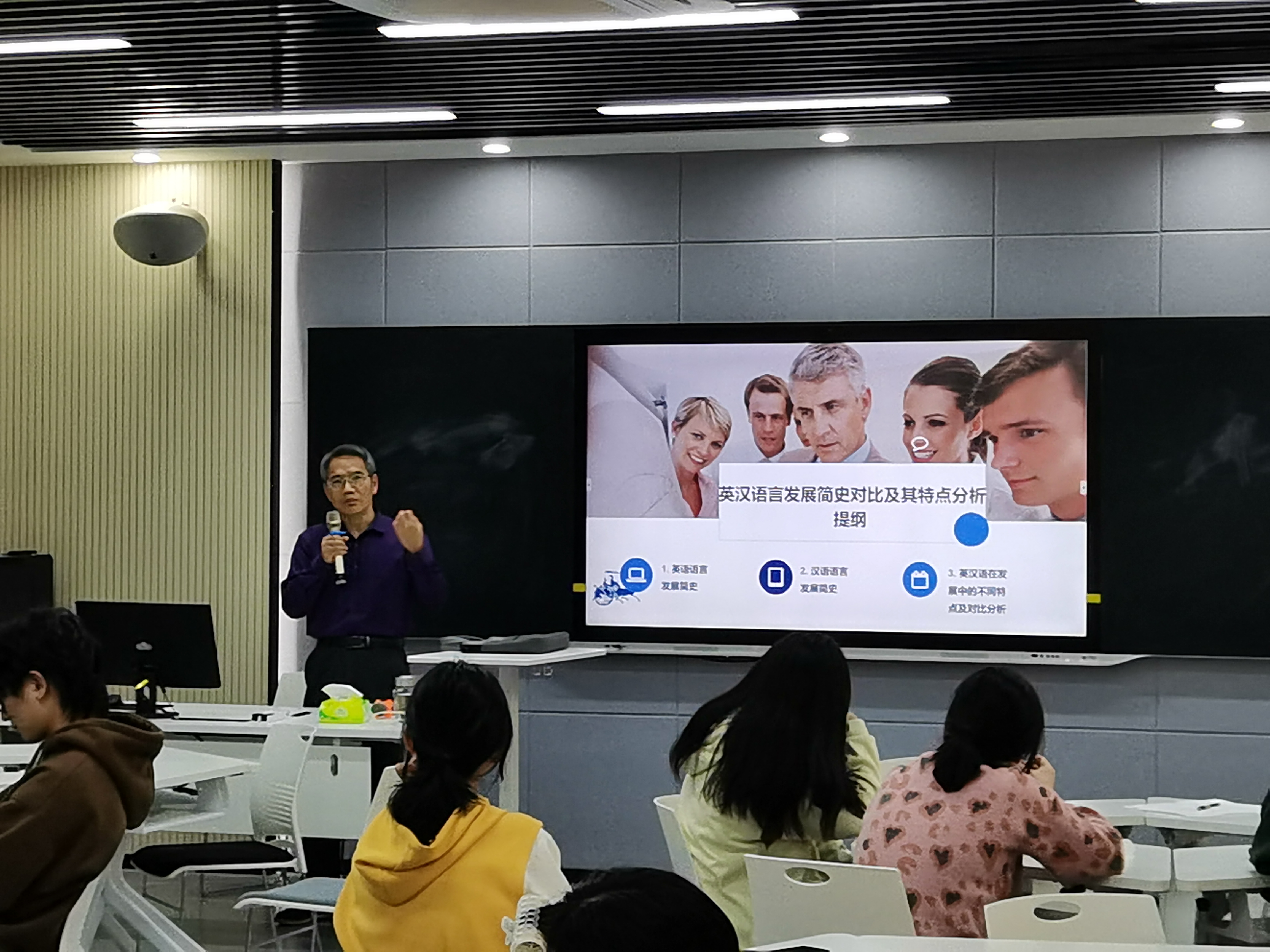 4月24日下午,蒙兴灿教授为学院2022级应用英语专业学生作了以“英汉语言发展简史对比及其特征分析”为主题的精彩讲座。应用英语系综合英语教研室主任何洁霞老师主持了讲座。