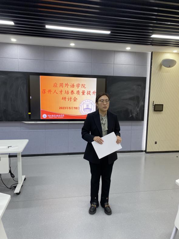 5月10日下午,应用外语学院在智慧教室G339召开了人才培养质量提升研讨会,本次会议由院长曹宇晖主持,学院领导、教学督导、各系部教研室负责人、两办负责人、教师代表参加会议。本次会议旨在积极推进我院人才培养质量提升工作,聚焦大学外语等级考试、学科竞赛、专升本/升硕等人才培养核心指标,从课程设置、课堂教学、教学方式方法、教材选用、测试评估、高职学生管理等方面精准施策,统筹推动学院整体目标逐步实现。