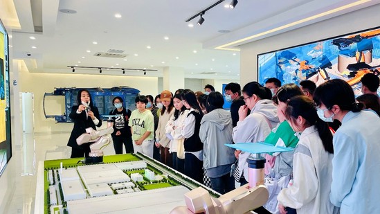 随后,讲解员带领学生参观了焊装车间和总装车间。从初步的图形设计到最终的车辆组装,每一个流程都让学生对汽车的认识更进一步。汽车德语课本上的知识真正跃然于眼前,抽象的学科也在实际运用中得以具象化。