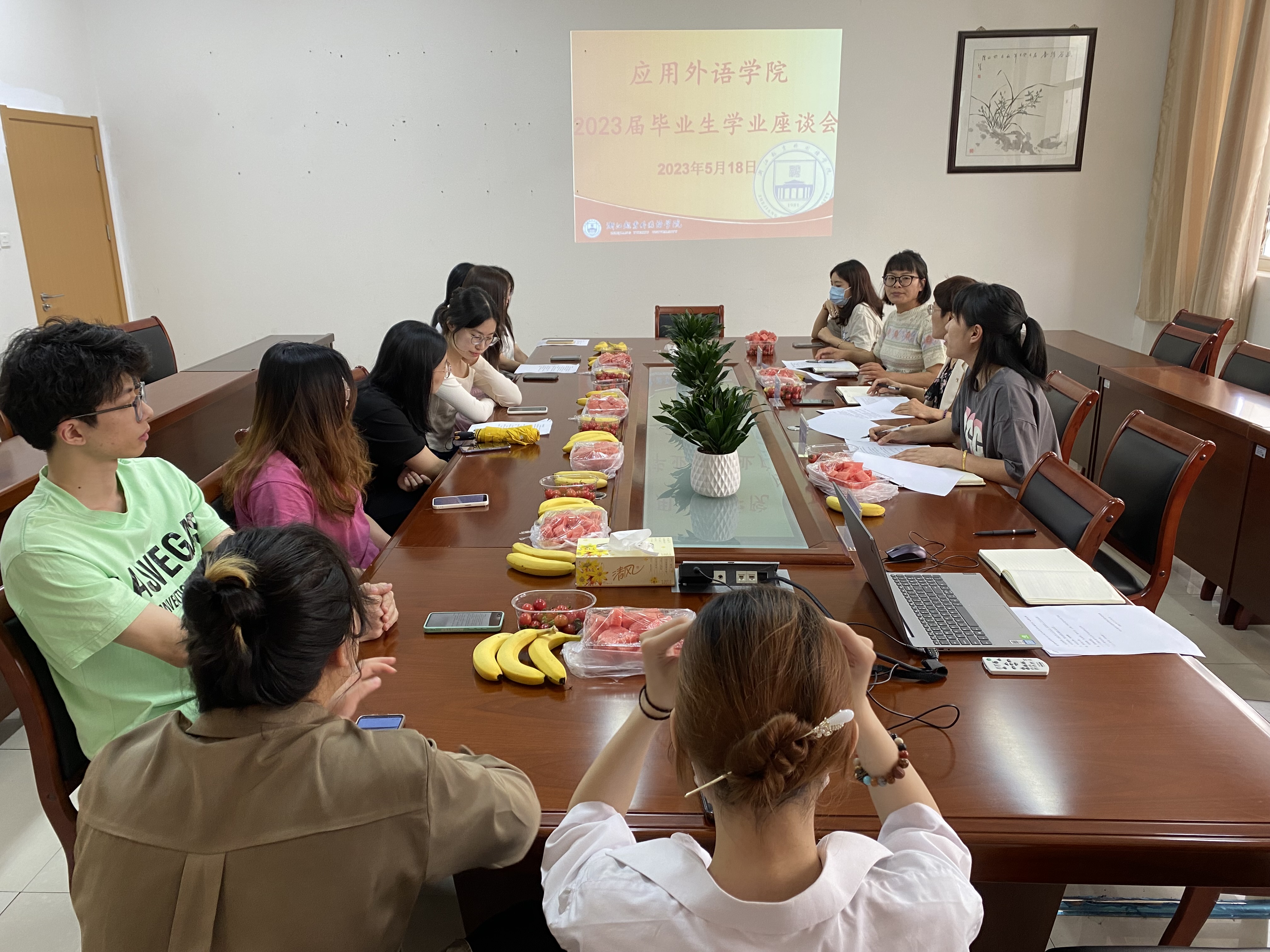 为进一步加强学院教育教学质量管理水平,2023年5月6日下午,应用外语学院在G331召开2023届毕业生学业座谈会。学院领导与学生代表共14位参加,会议由学院党委副书记潘宁主持。
