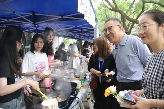 东方风情节中受学生瞩目的料理大赛更是一大特色。日、韩、阿、印、泰、土、波各系师生,各组自备食材在摊位上现场制作美食。独具特色的泰式奶蓝与芒果糯米饭、美味的日式章鱼小丸子和铜锣烧、酸奶奥利奥与奶香芋泥以及沁人心脾的沙冰等都让师生们享受了一场别具风格的美食盛宴。