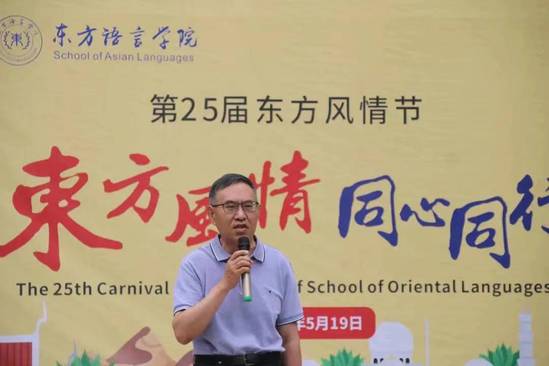 邱鸣院长为本次东方风情节开幕式致辞,他提到:“东方风情节是东方语言学院“一院一品”的品牌活动。它旨在弘扬本土文化,吸收多国文化,在多种文化相互交织和相互影响下营造独特绚丽的东方风情,能够让同学们在学习外语的同时更好地了解其他国家的文化风俗,体验中华文化和外国文化的同时开拓同学们的眼界,丰富同学们的课余生活。”