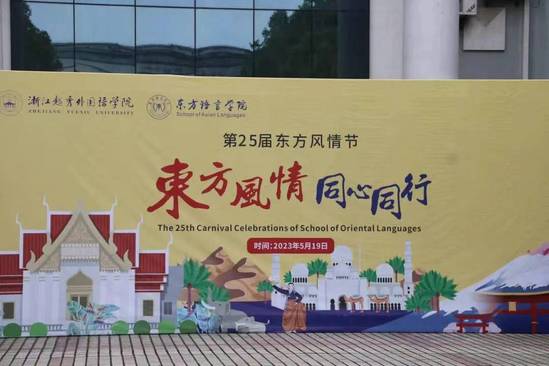 2023年5月19日中午,东方语言学院第25届东方风情节在稽山校区西门SPT街盛大开幕。本次东方风情节得到了学院领导的大力支持,邱鸣院长、陶凤书记、汪洋副院长、易朝晖副院长、王丽娜副书记等学院领导亲临现场,学院各系主任、老师、学生参加了此次活动。