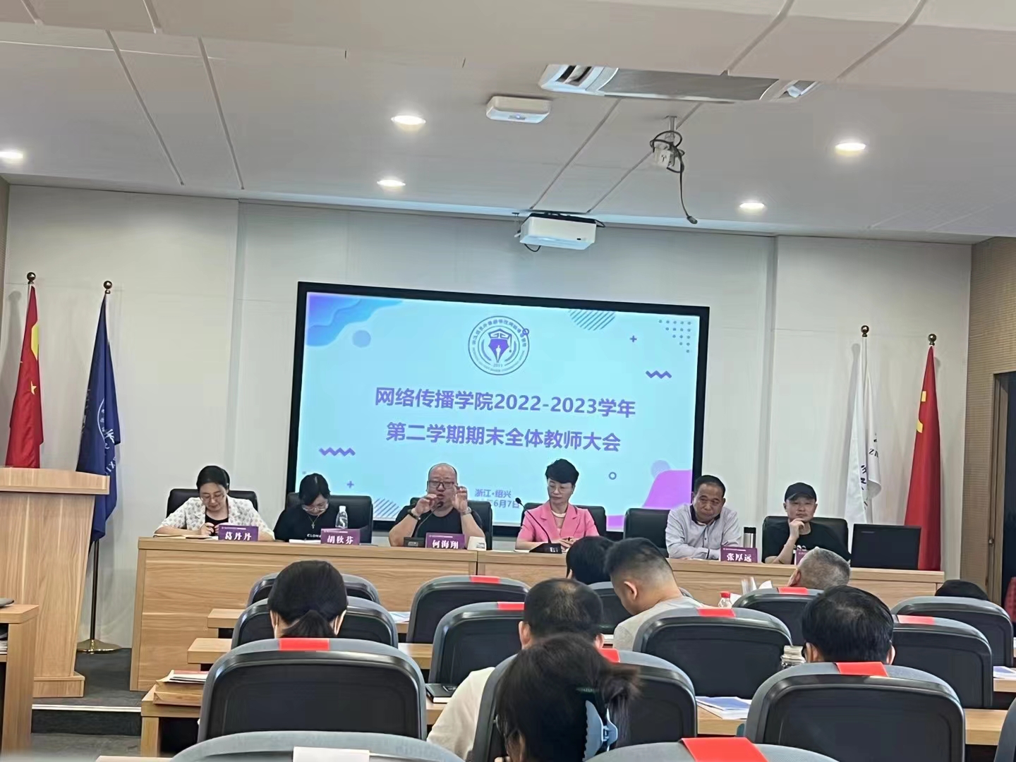6月7日,网络传播学院2022-2023学年第二学期期末全体教师大会在4-301会议室如期召开。会议由学院党委书记吴月齐主持,学院院长何海翔、教学副院长胡秋芬、网络舆情研究院常务副院长张厚远、党委副书记葛丹丹、院长助理庄焕明及全体教师出席。