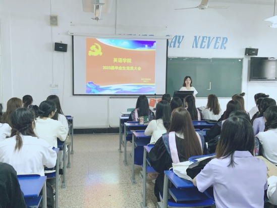 6月16日中午,英语学院在C119举行2023届毕业生党员大会。英语学院党委书记李敏、学生第二党支部书记胡嘉玲以及100余名毕业生党员参加会议。会议由胡嘉玲老师主持。
