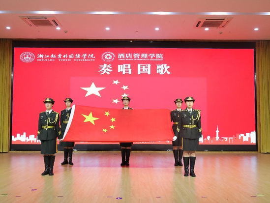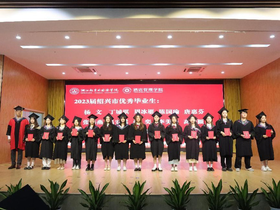酒店管理系主任王龙为2023届绍兴市优秀毕业生颁发荣誉证书。
