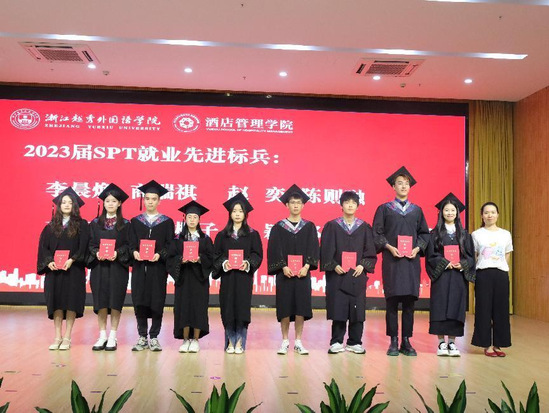 酒店管理学工办主任高楠为2023届SPT就业先进标兵颁发荣誉证书。