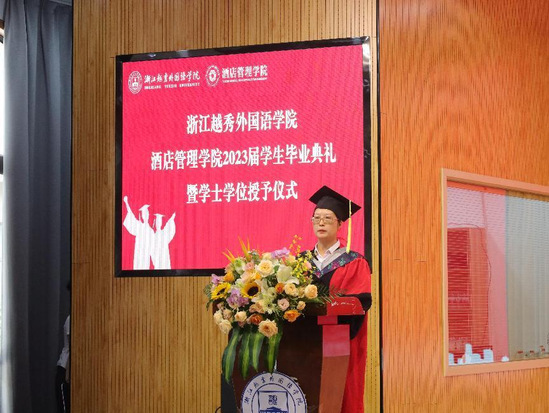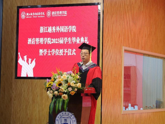 酒店管理学院院长尚云峰宣读酒店管理学院2023届本科毕业生毕业的决定。