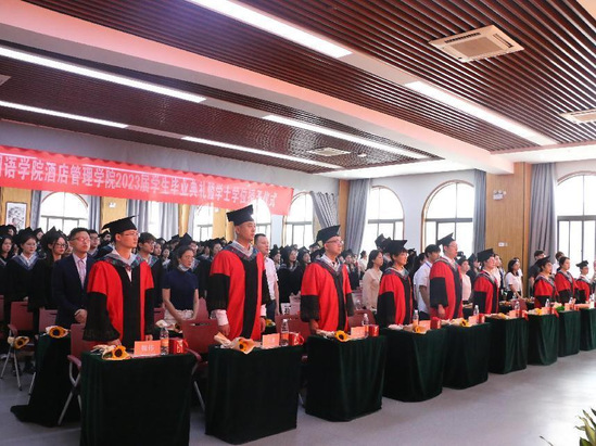 2023年6月15日下午,酒店管理学院2023届毕业典礼暨学位授予仪式在越秀厅隆重举行,301名毕业生圆满完成大学学业获得学士学位证,开始人生新的征程。酒店管理学院院长尚云峰、党委书记吴伟英、专业带头人丁萍萍、学院督导刘卫星等学院领导与老师出席本次毕业典礼。毕业典礼由酒店管理学院副院长钱芳斌主持。