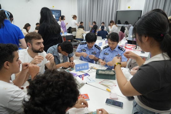 本次活动特别邀请了越城公安分局出入境大队警官出席,与留学生们共同迎接端午节的到来。冯绮大队长代表出入境管理大队发表节日致辞,希望留学生们能了解中国优秀传统文化,也表达了对留学生端午安康的祝福。警官们将寓意祈福和美好的五色绳作为节日祝福送给同学们,并预祝本次活动的圆满成功。冯警官同时强调了暑假安全问题,希望同学们在暑期做好自我安全防护,严格遵守法律法规和校纪校规。