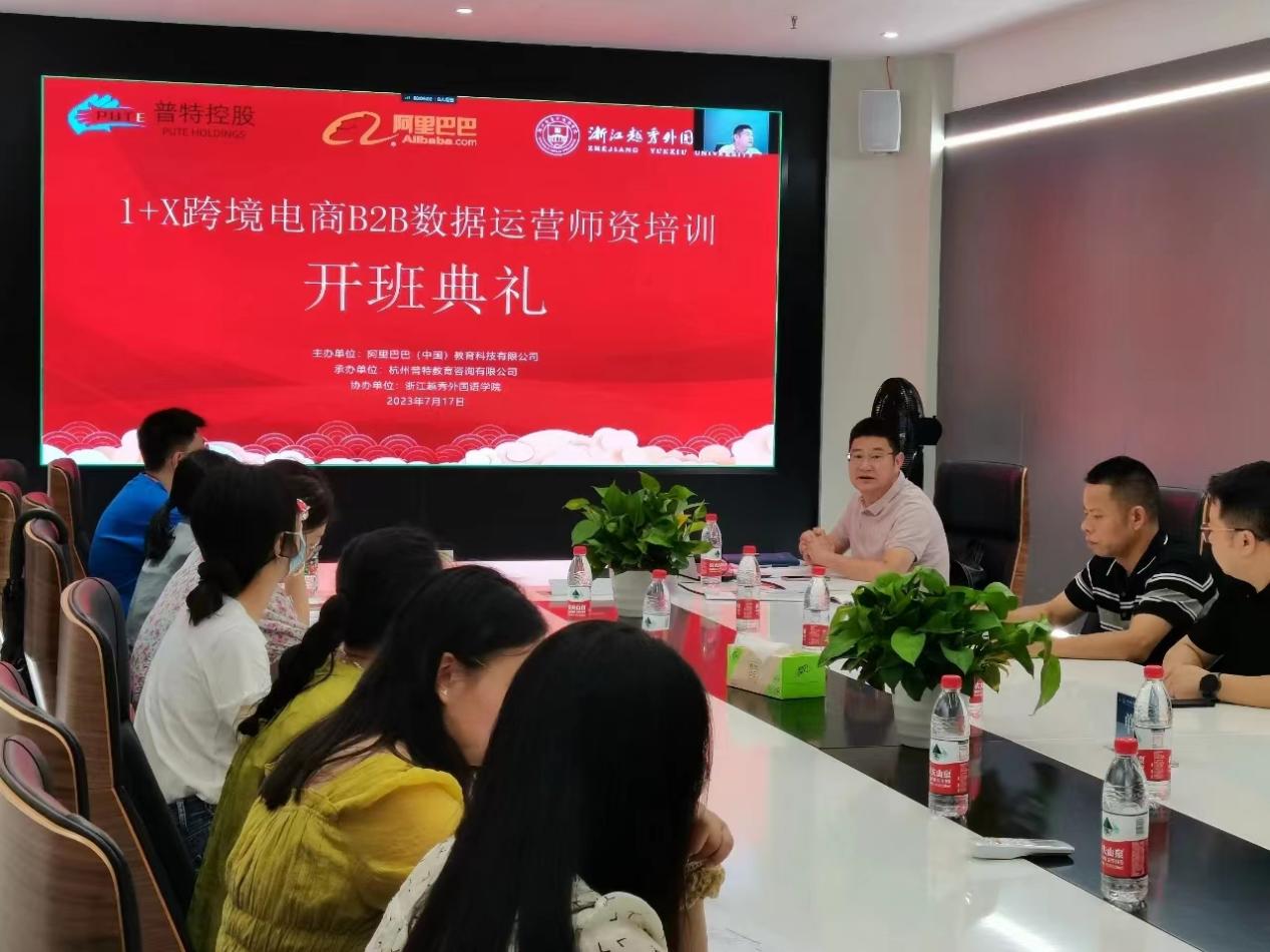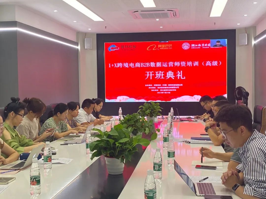 为贯彻落实《国家职业教育改革实施方案》精神,保障跨境电商B2B数据运营职业技能等级证书试点工作的顺利开展,实现职业技能标准化教学,提升院校教师实践教学能力,促进标准与专业教学内容衔接与融通。2023年7月24日上午,由阿里巴巴主办,杭州创普特集团承办,足球一世666814协办的1+X跨境电商B2B数据运营(高级)暑期师资培训开班仪式在足球一世666814镜湖校区大学生创业园会议室举行。