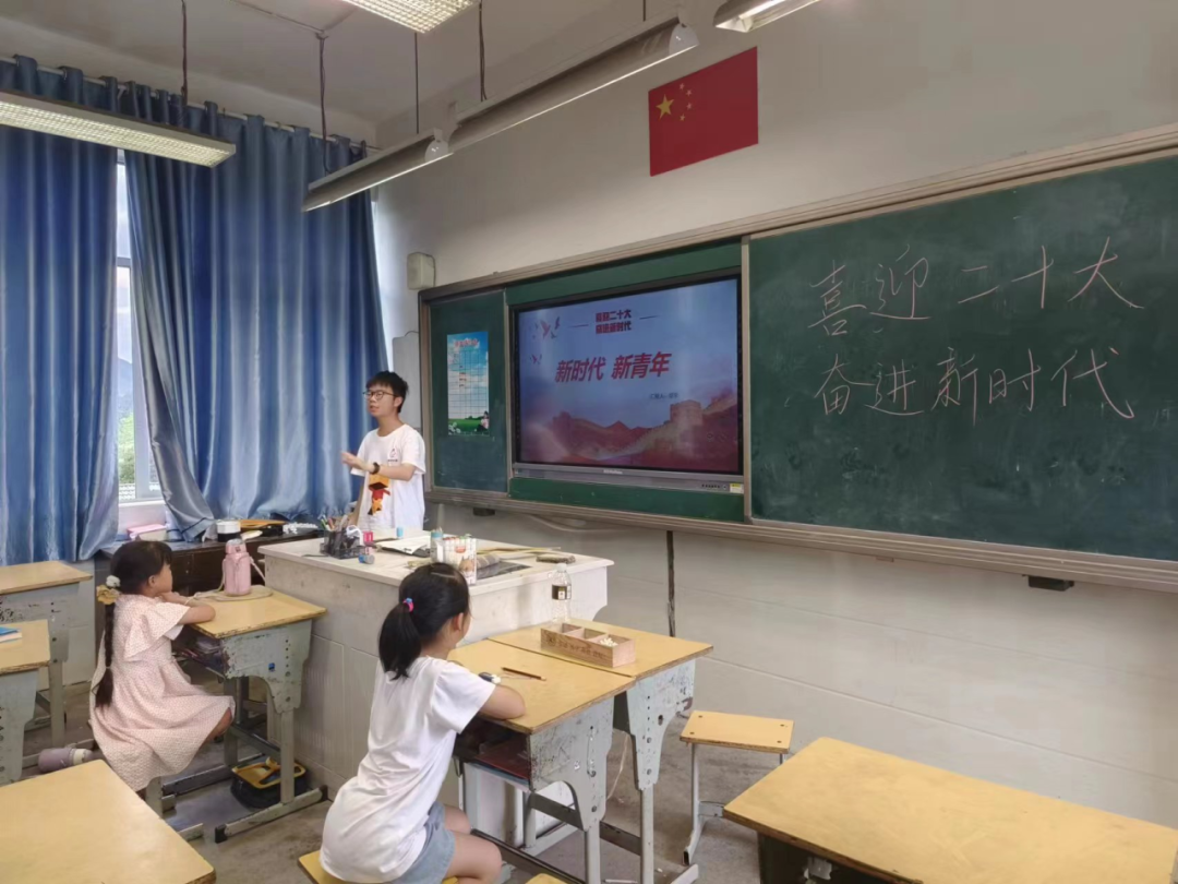 为引导青少年拥护和热爱中国共产党,重温历史峥嵘岁月,厚植爱国主义情怀,将红色精神内化于心,外化于行,争做堪当民族复兴重任的时代新人。新时代新青年宣讲团根据衢州严村小朋友的年龄特点,分阶段为小朋友们组织了两堂“党的知识”学习课,教育团成员充分发挥自身的主观能动性,使课堂内容更加贴合实际、更加多元化,让小朋友们能够充分理解教育团成员所讲的内容。