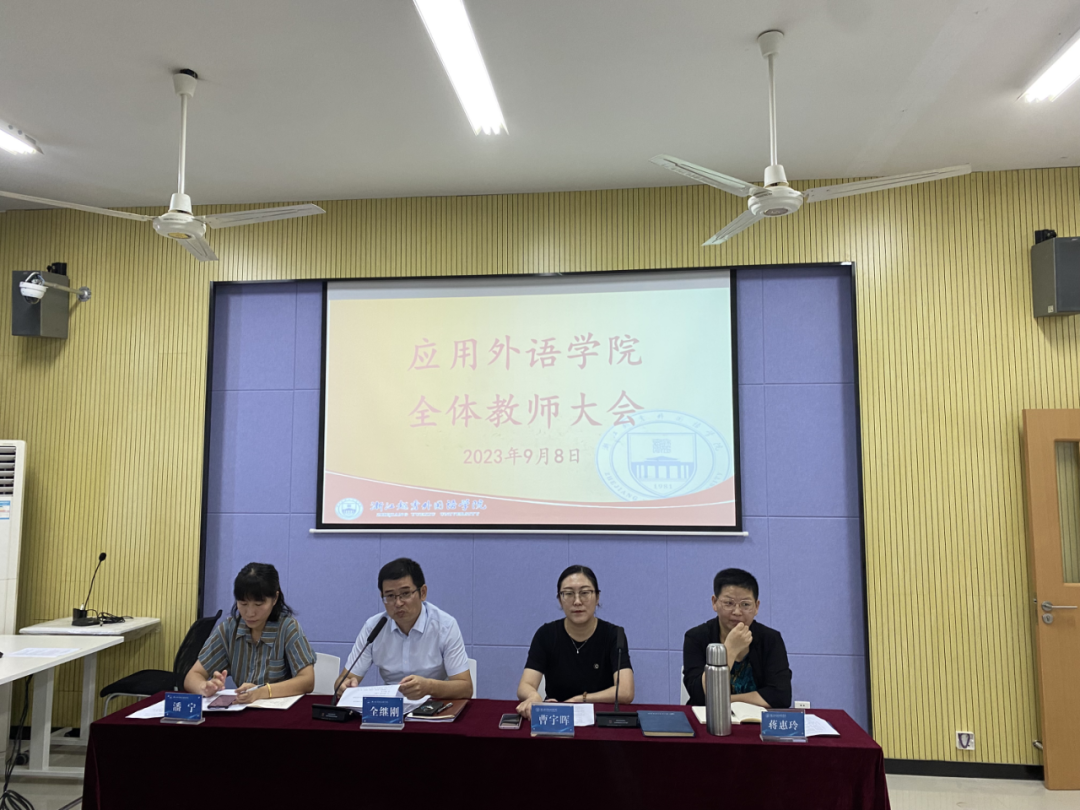 应用外语学院2023-2024学年第一学期期初全体教师大会于9月8日在稽山校区G318召开。会议由学院党委书记全继刚主持,学院党政领导及全体教职工参加了本次大会。