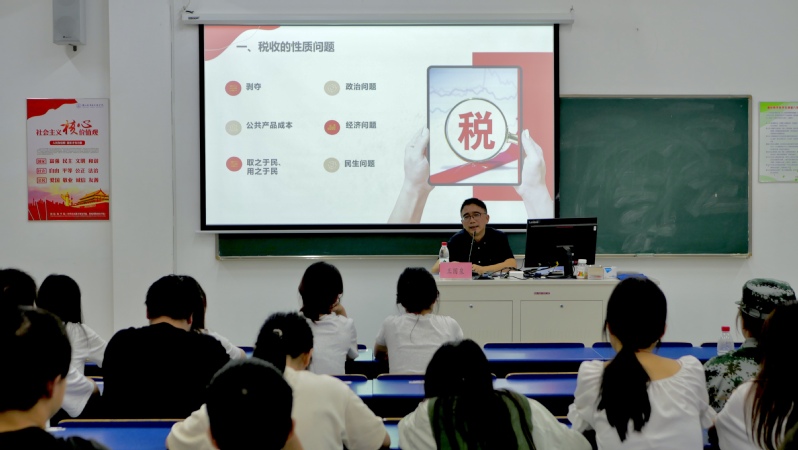 随后,王国泉从税收征收的历史悠久以及其必要性,向同学们呈现了改革开放四十年来我国税收的重大事件,明确了税收工作的重要性,体现了我国税收制度的不断完善。