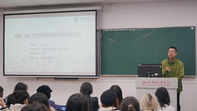 此次讲座让同学们意识到出国(境)升学不仅是一条可供选择的未来道路,更是一个塑造好自己、更全面发展自己的好机会。也祝愿英语学院的同学们在未来的学习中,保持热忱与求知,不断巩固自己的英语学习能力,突破自己的极限,在日复一日的磨砺中让自己更上一层楼!