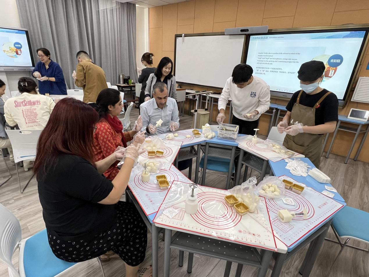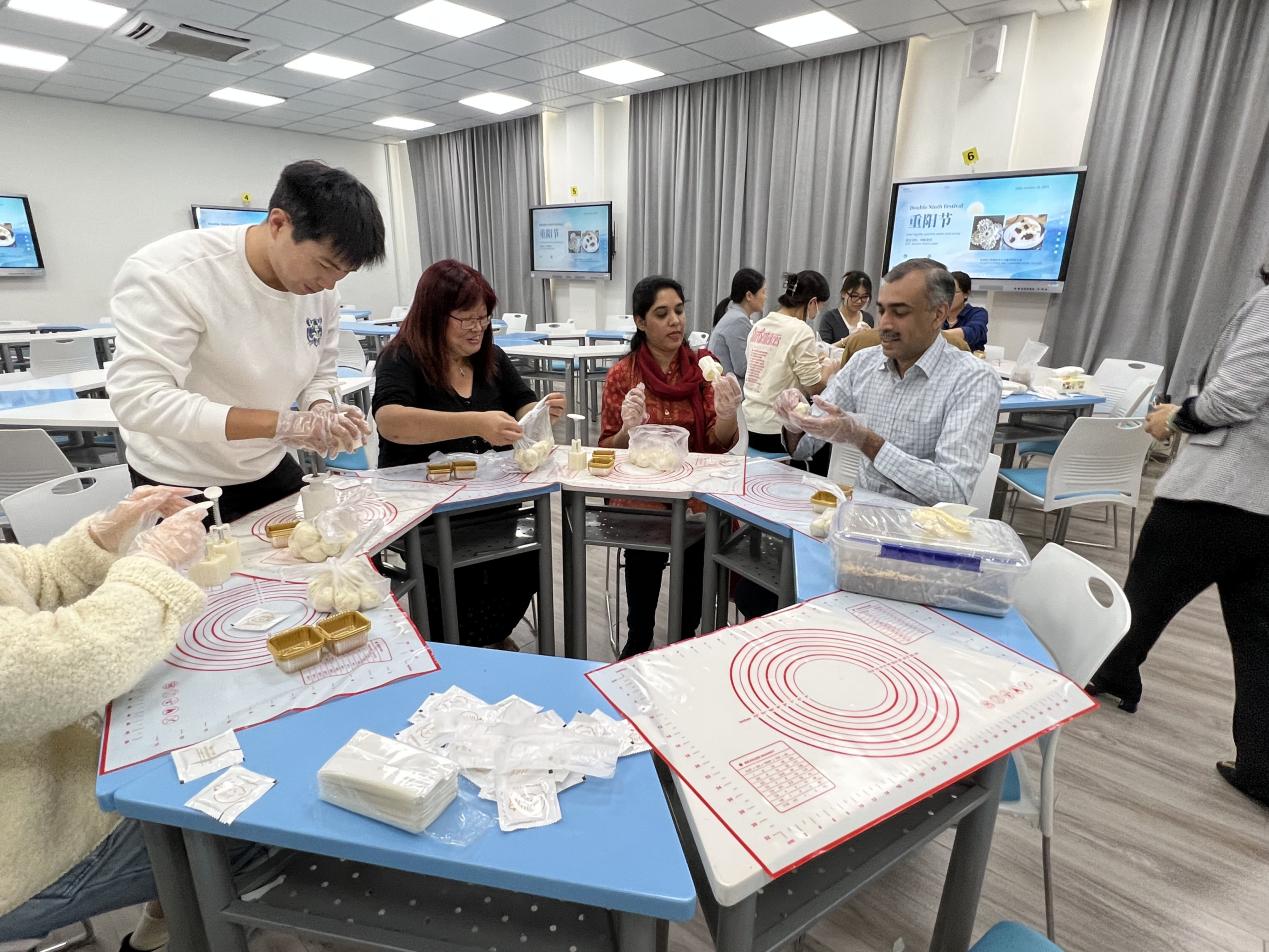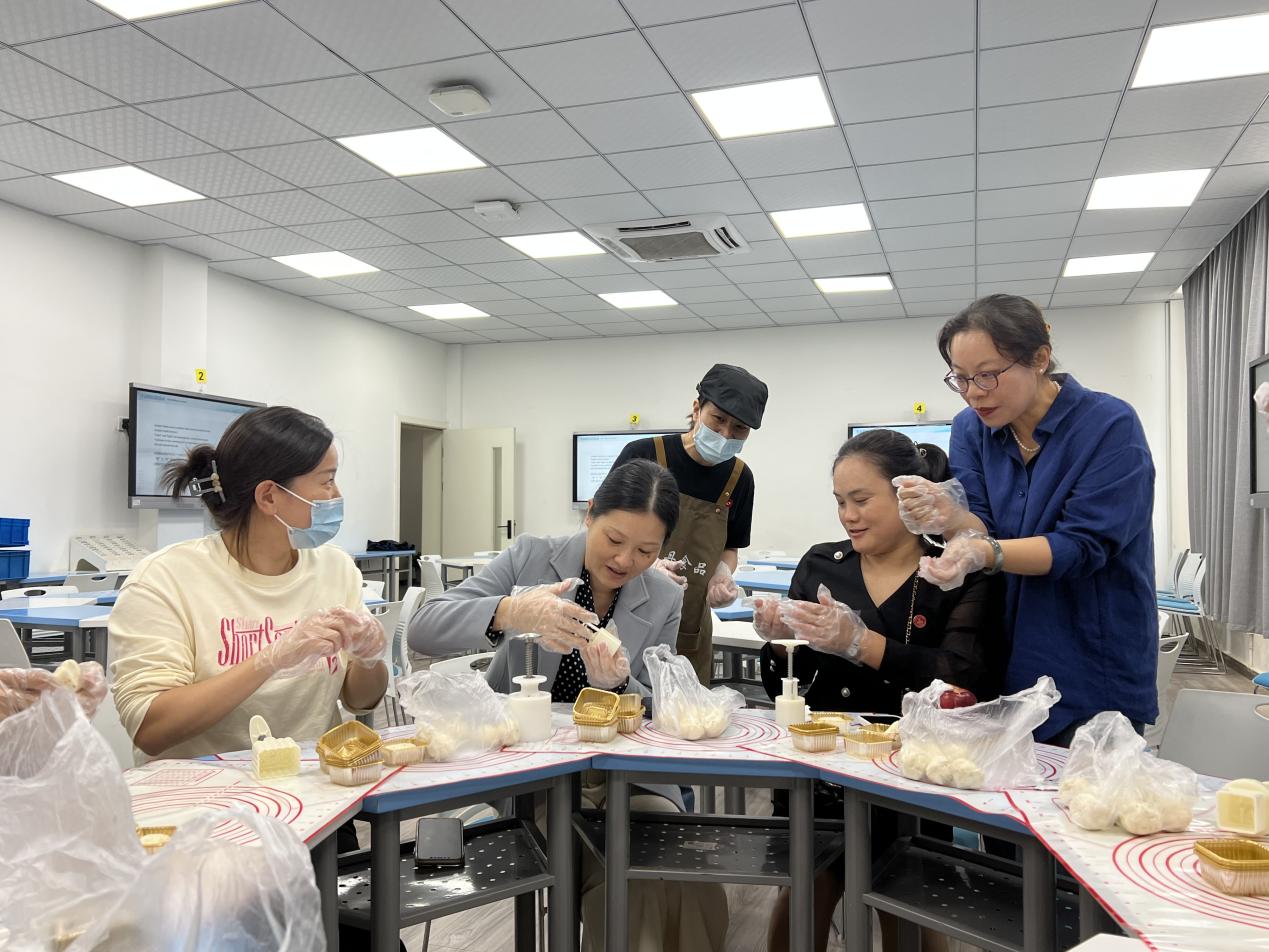 随后,糕点师给大家讲解了重阳糕制作的流程。在糕点师的指导下,老师们都兴趣盎然,很快就上手制作起来。整个制作活动,每位教师都体验了一回亲自动手的乐趣。大家纷纷表示,自己亲手做的糕点十分有意义。