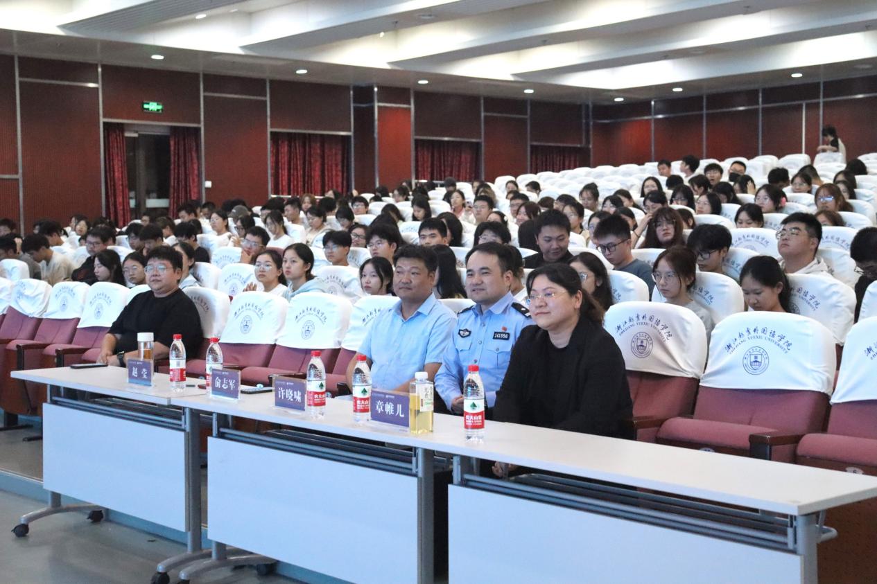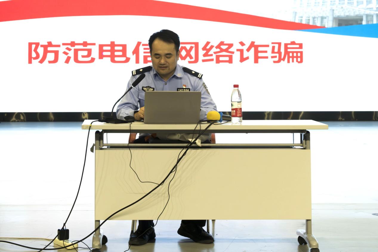 保卫处副处长(主持工作)俞志军从交通安全、消防安全、电信诈骗、人身财产安全及校园各项规章制度等方面出发,围绕发生的实际事件进行全方面的阐述,教导同学们如何处理学习、生活中遇到的各项危机。随后,他告诫同学们要时刻保持警惕之心,抵御现实中和网络上遇到的各种诱惑,养成健康合理的消费习惯。最后,他呼吁同学们电瓶车有序停放,不要骑车带人,遇事可以随时寻求保卫处帮助。
