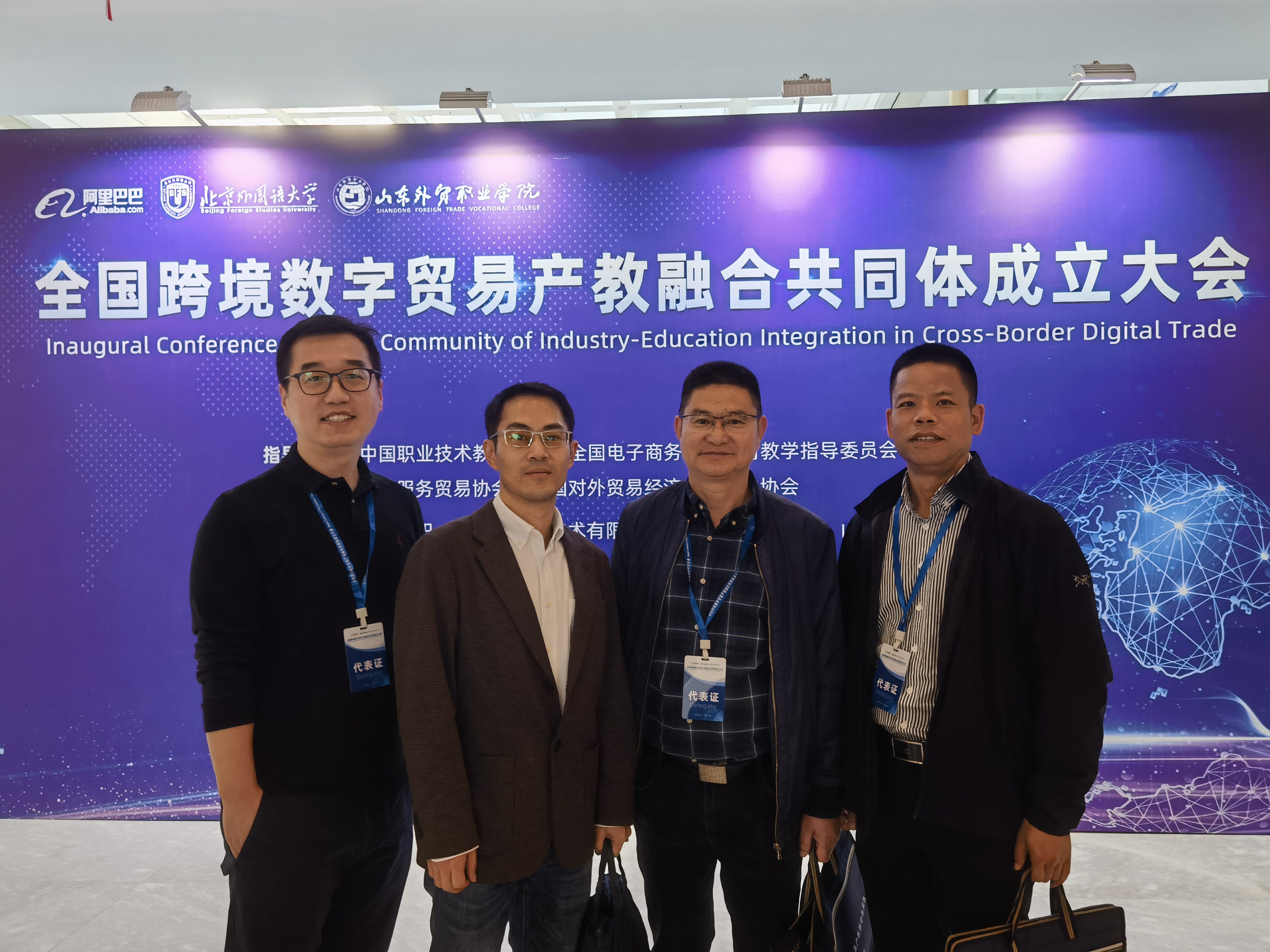 2023年10月27日,全国跨境数字贸易产教融合共同体(简称“共同体”)成立大会在青岛召开,全国200余所高校、科研院所和行业企业到会,足球一世官网受邀加入共同体并任首届副理长单位。数字贸易学院院长单胜江、副院长胡建海代表学校参会。