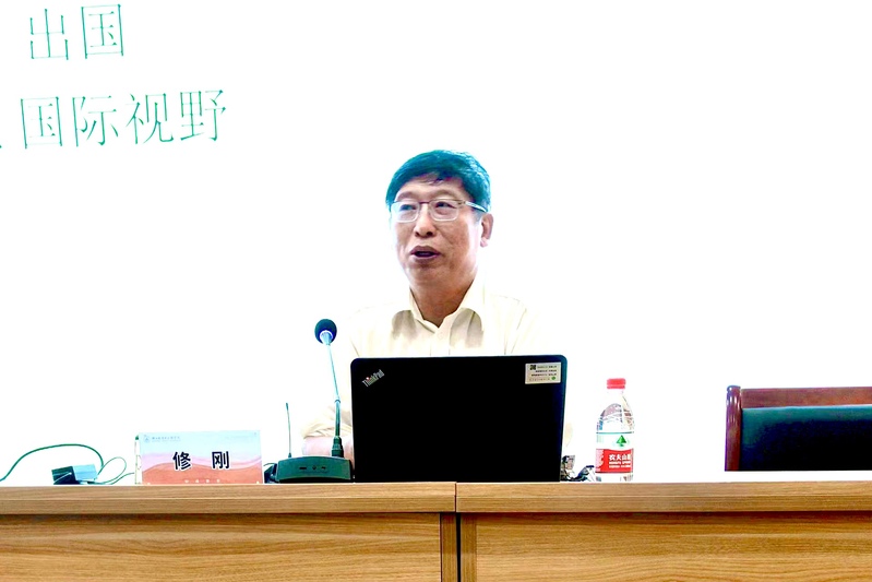 随后,修刚教授围绕日语专业如今的机遇和挑战展开了详细的讲解。修刚教授谈到世界高等教育的新趋势、新文科与新技术的诞生、中国式现代化的新需求等都是当下社会给予我们的机遇。但新时代人工智能领域的高速发展,也使就业竞争变得愈发激烈。针对这一现状,修刚教授从知识、能力、素质三个方面向日语专业学生提出了要求。
