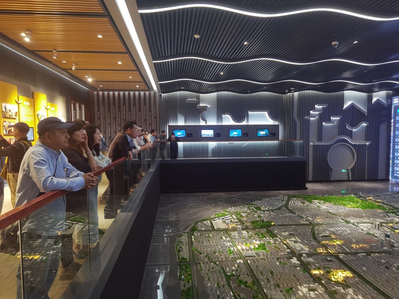 拾级而上,来到主厅,大家在此欣赏到现今绍兴古城的数字沙盘,以及绍兴古城保护的数字化大脑,了解古城数字化保护成果,还亲身体验了3D、VR全景虚拟游览系统,体验身临其境之感。古城信息展示中心突出“数字古城、数智赋能”,以数字孪生、物联网、云计算、实景三维、大数据等技术为支撑,融绍兴文化底蕴与古城保护规划为一体,是智能化、精细化开展古城保护利用的管理平台。