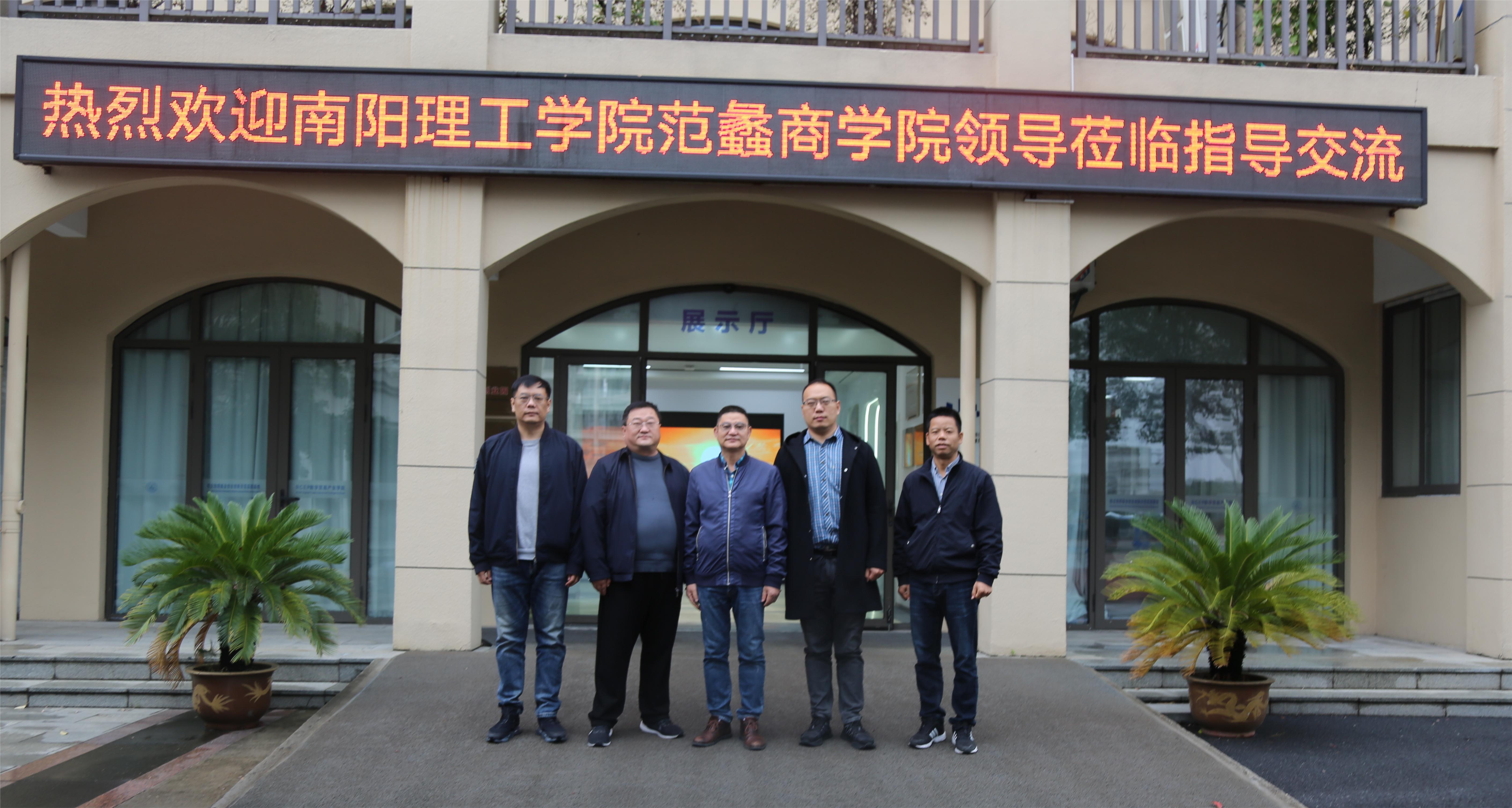 11月10日上午,南阳理工学院范蠡商学院党委书记闫合占率国际经济与贸易教研室主任吴信科、电子商务教研室主任李东阳等一行来我院考察交流。学院院长单胜江、副院长胡建海、跨境电商专业负责人崔艳清等参加交流。