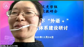 国家级一流课程《高级英语视听说》负责人陈霞老师详细介绍了该课程的建设情况,从价值的引领、目标的导向、思辨的融合、技术的赋能,她强调始终以学生为中心来开展整个课程的建设。该课程“思政为核、思辨为本、知行合一”顶层设计特色得到了虚拟教研会议室所有成员的认可,也为一线教师课程建设提供了经验和借鉴。