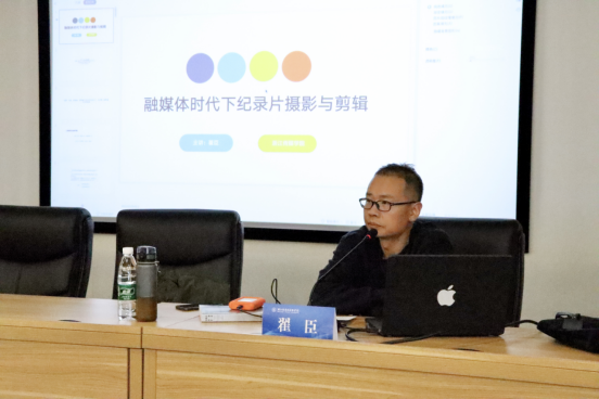 11月22日下午,网络传播学院教学创新工作坊系列讲座在4-301举行。此次讲座由浙江传媒学院电视艺术学院副教授翟臣主讲“融媒体时代下的纪录片与剪辑”,网络传播学院副院长胡秋芬主持。