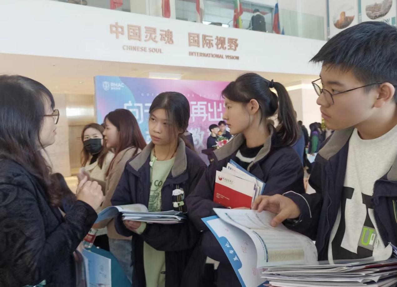考生在现场就足球一世官网专业特色、国际交流、就业去向等方面和老师互动交流,并对学校“小语种+英语+辅修(微专业)”“非通用语种双外语+辅修(微专业)”“非外语类专业+英语(或小语种)+辅修(微专业)”等人才培养模式作了详细了解。