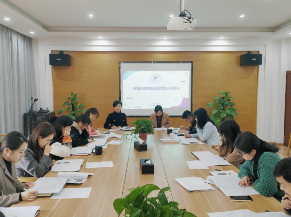 为了迎接学校本科教育教学审核评估预评,细化责任分工,11月29日,网络传播学院在4-217召开党政管理人员会议,进一步动员部署审核评估预评估相关工作。学院党委书记吴月齐、副院长胡秋芬、党委副书记葛丹丹、综合办及学工办全体人员参加会议。会议由党委书记吴月齐主持。