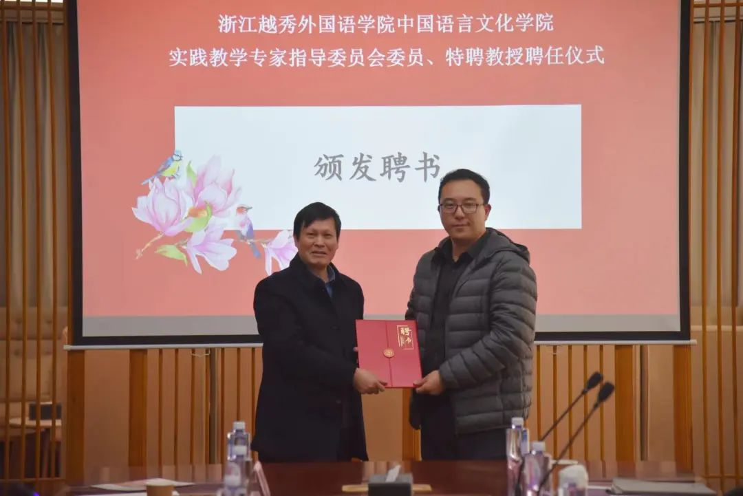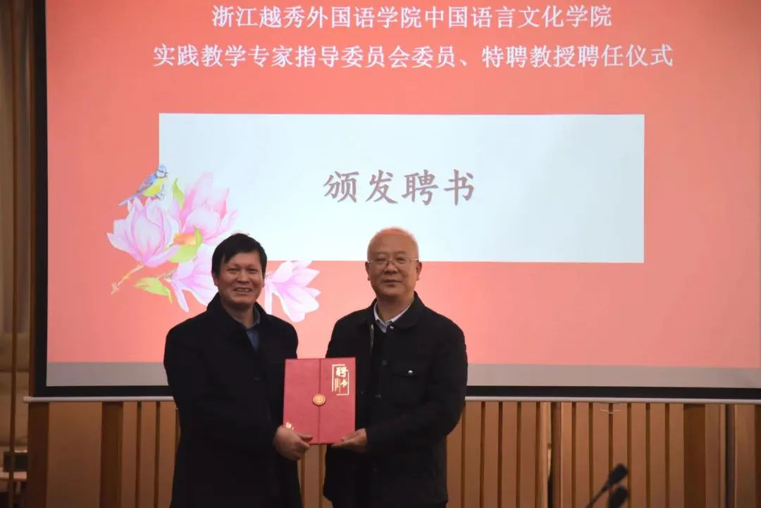 在双方交流环节,丁太勰、邵君立,姜兴鲁分别就学院三个专业的情况、实习实践特色进行了进一步介绍,与会领导就合作方向和内容进行了热烈讨论,双方就共建教学实习实践基地合作达成一致。最后,中国语言文化学院特聘北海小学教育集团方明江校长等7名校长为实践教学专家指导委员会委员、特聘教授。