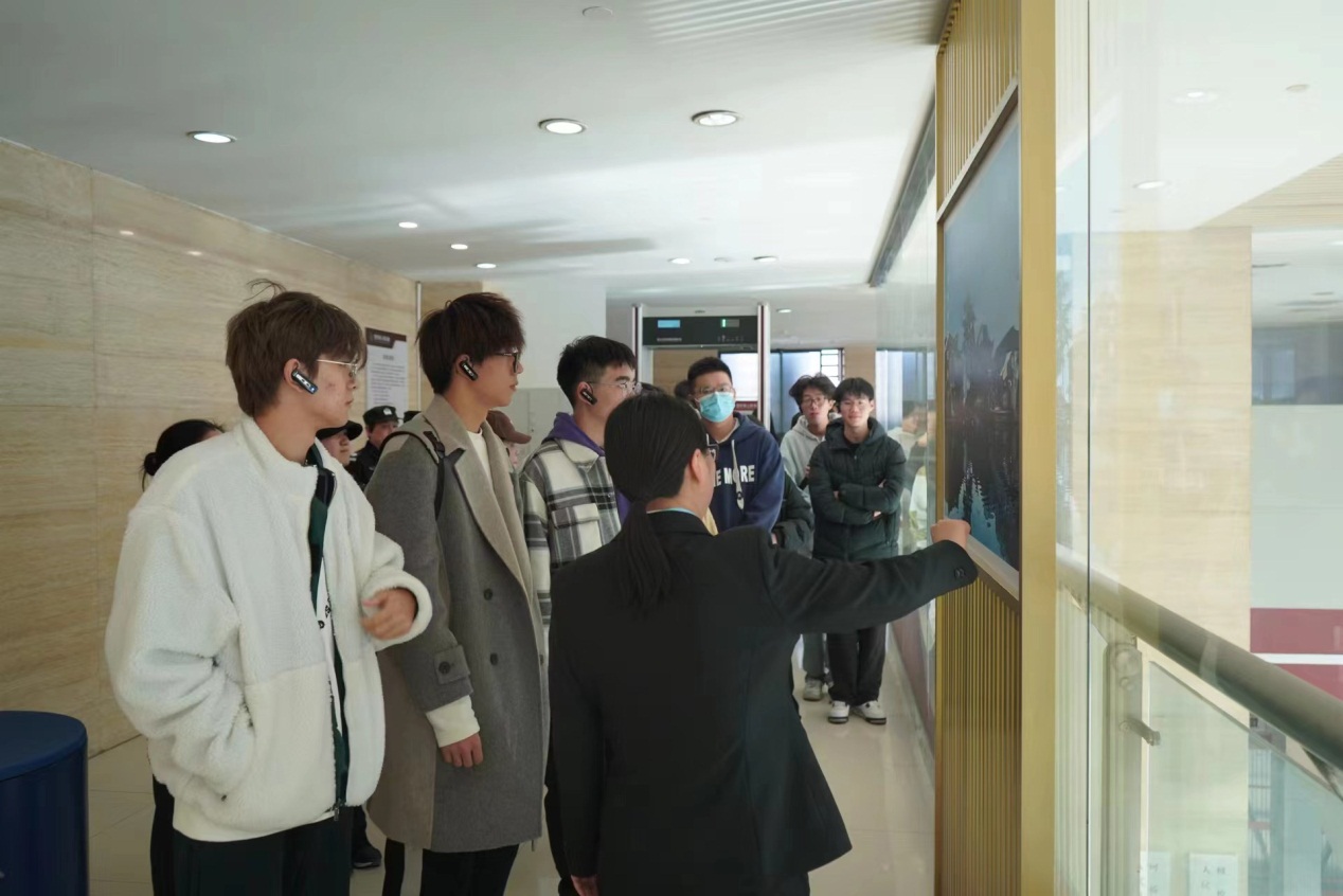 随后,同学们来到位于绍兴柯桥古镇非物质文化遗产馆内的“共享法庭”,了解“法护知产”协同保护模式。“共享法庭”对于同学们来讲是一个全新的概念。在讲解员的带领下,同学们参观了柯桥区非遗馆,观看了“共享法庭”宣传片,了解到“非遗馆共享法庭”是由柯桥区人民法院与区文化广电旅游局共同设立的,作为架构在数字空间、虚拟在群众身边的人民法庭,以“一根网线、一块屏”为标准配置,具备调解指导、网上立案、在线诉讼、普法宣传、基层治理等功能。对矛盾纠纷“就地调处”,迄今调解成功古镇内图标侵权等多类纠纷。